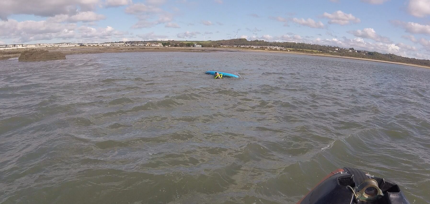 Porthcawl RNLI’s volunteer crew were paged by HM Coastguard following a 999 call they had received from a person at Newton Point who had spotted a capazised kayaker who was in difficulties near Newton Point.